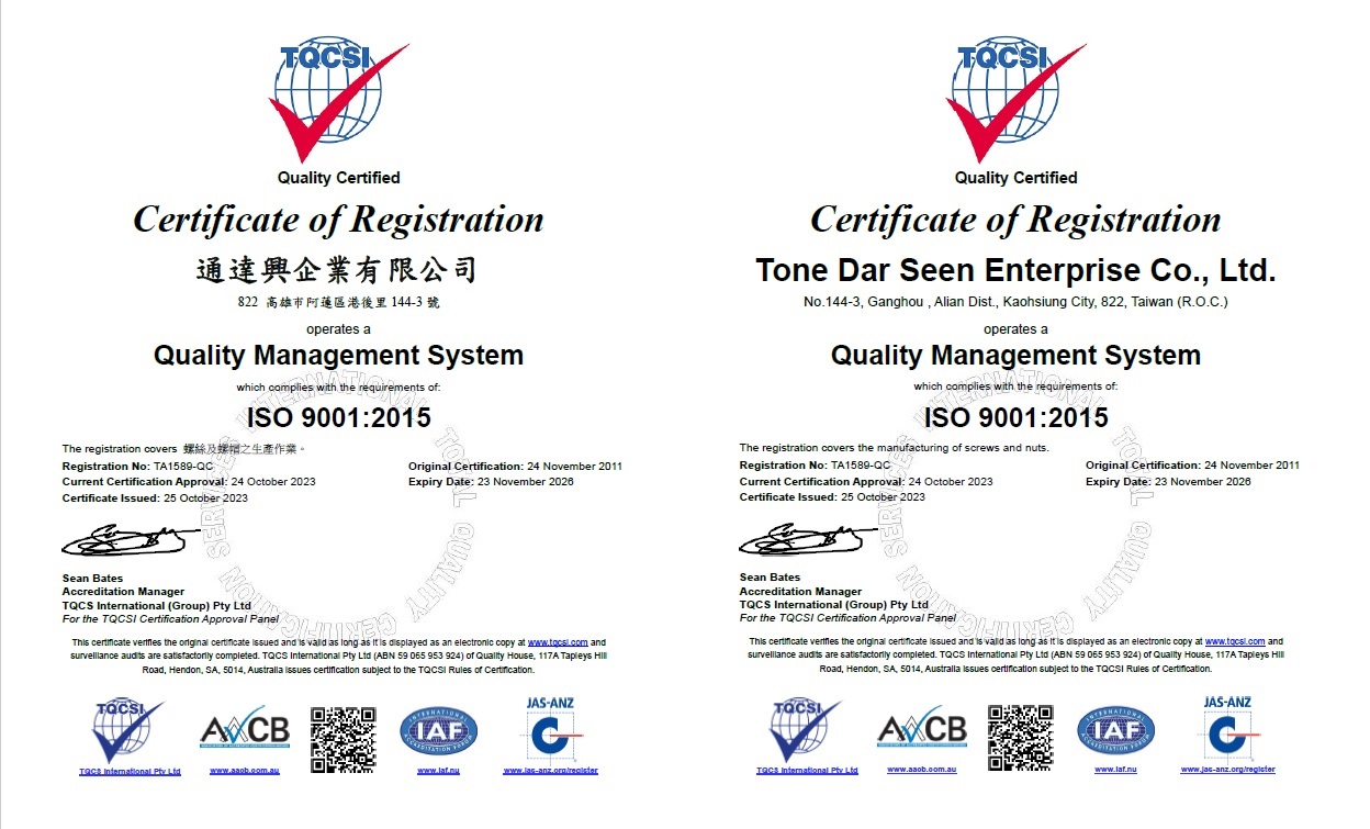 通達興企業有限公司創立於1983年,為專業的半中空鉚釘、螺絲製造商。我們擁有超過30多年的專業技術以及經驗於製作各式各樣的特殊螺絲,鉚釘。特別專攻於半中空鉚釘,多層鉚釘,多沖程以及特殊/客製產品的製造。